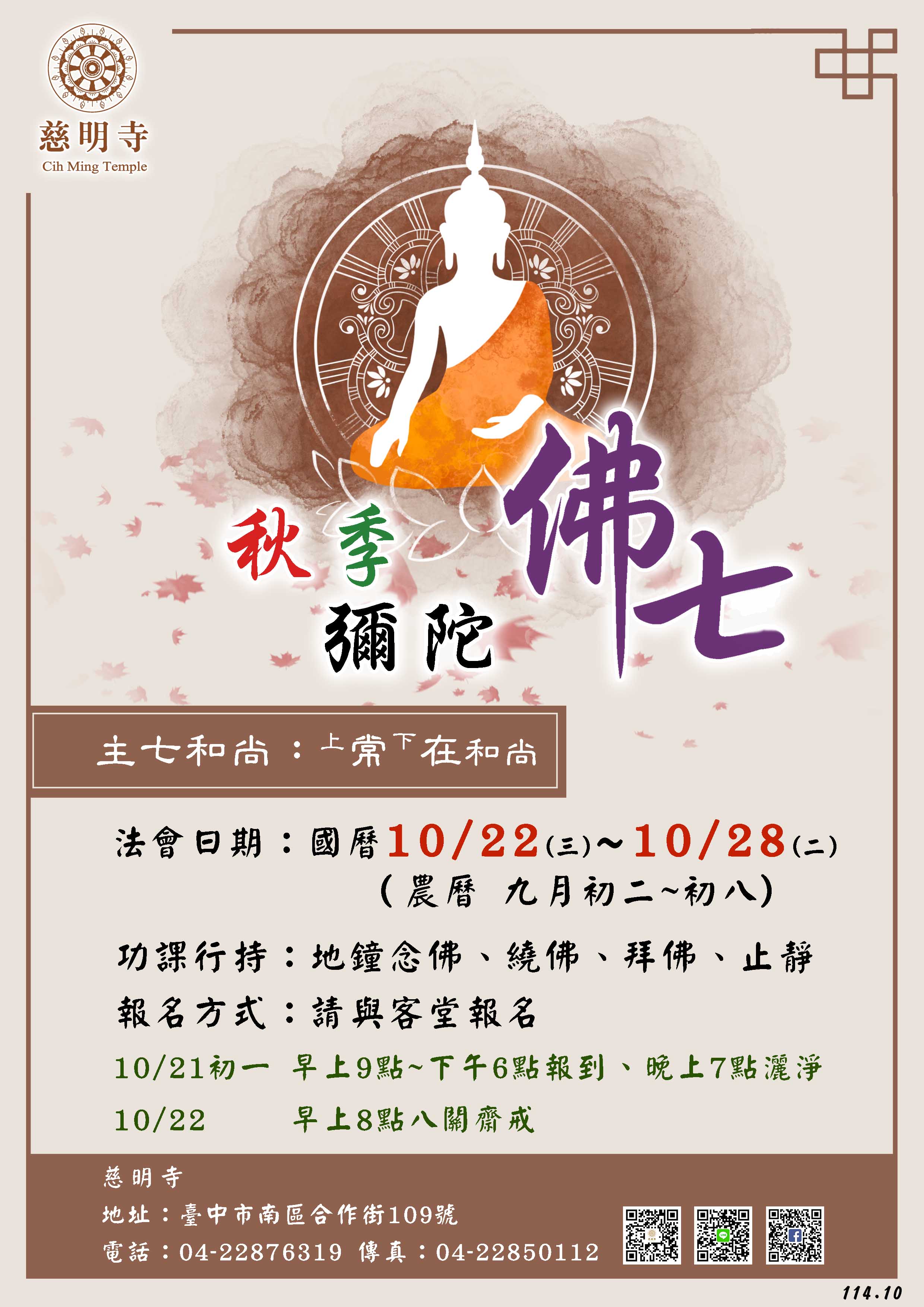 【法會通知】2025-10/22 ~ 10/28 秋季彌陀佛七暨八關齋戒~歡迎一起精進念佛