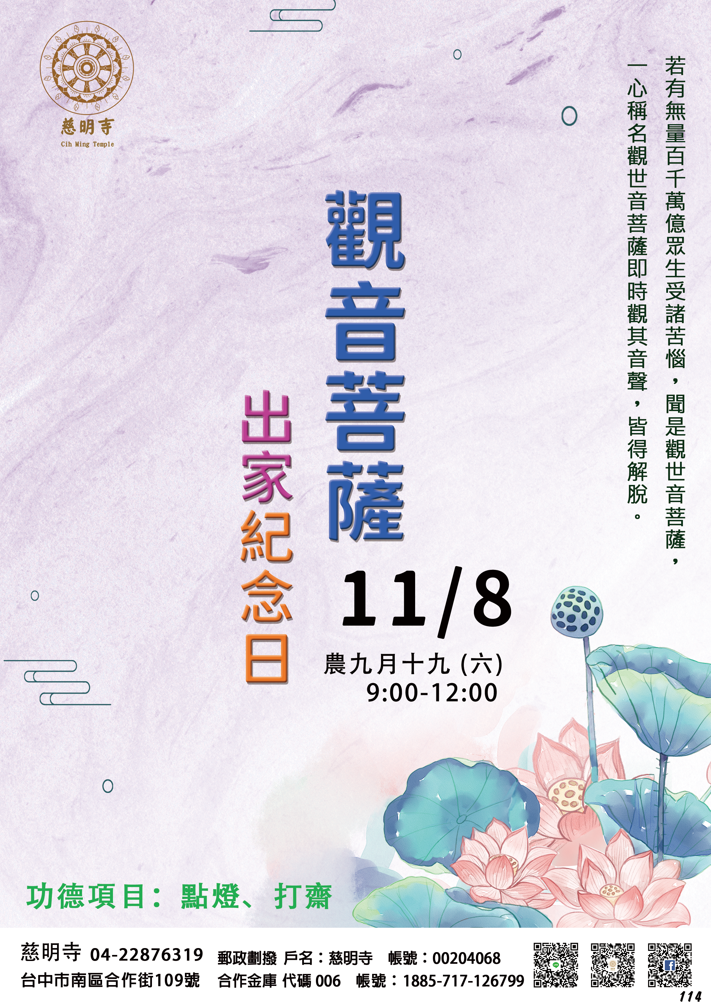 【法會訊息】2025-11-08 觀音菩薩出家紀念日