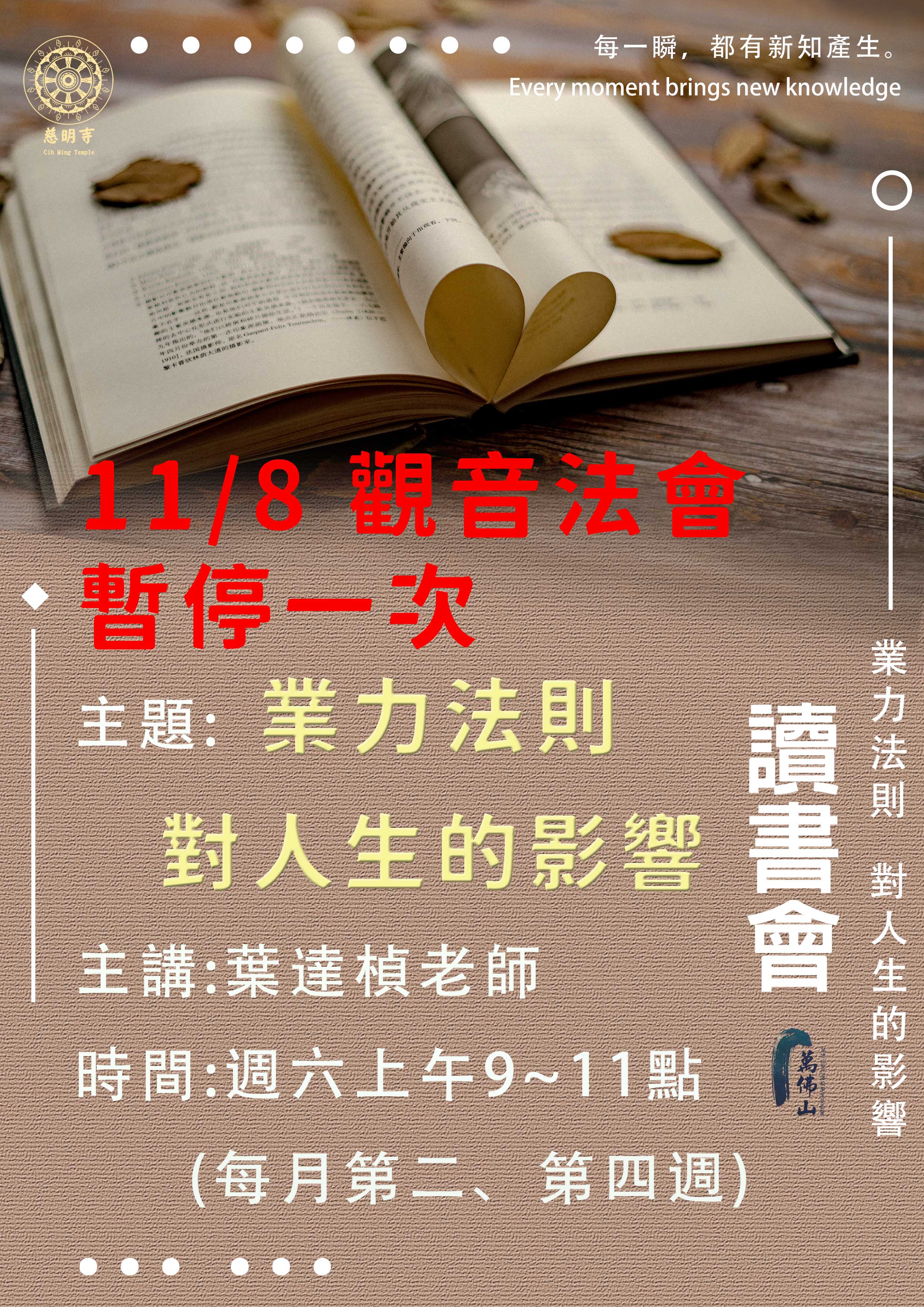 【訊息通知】2025-11-08 讀書會-業力法則對人生的影響 暫停一次