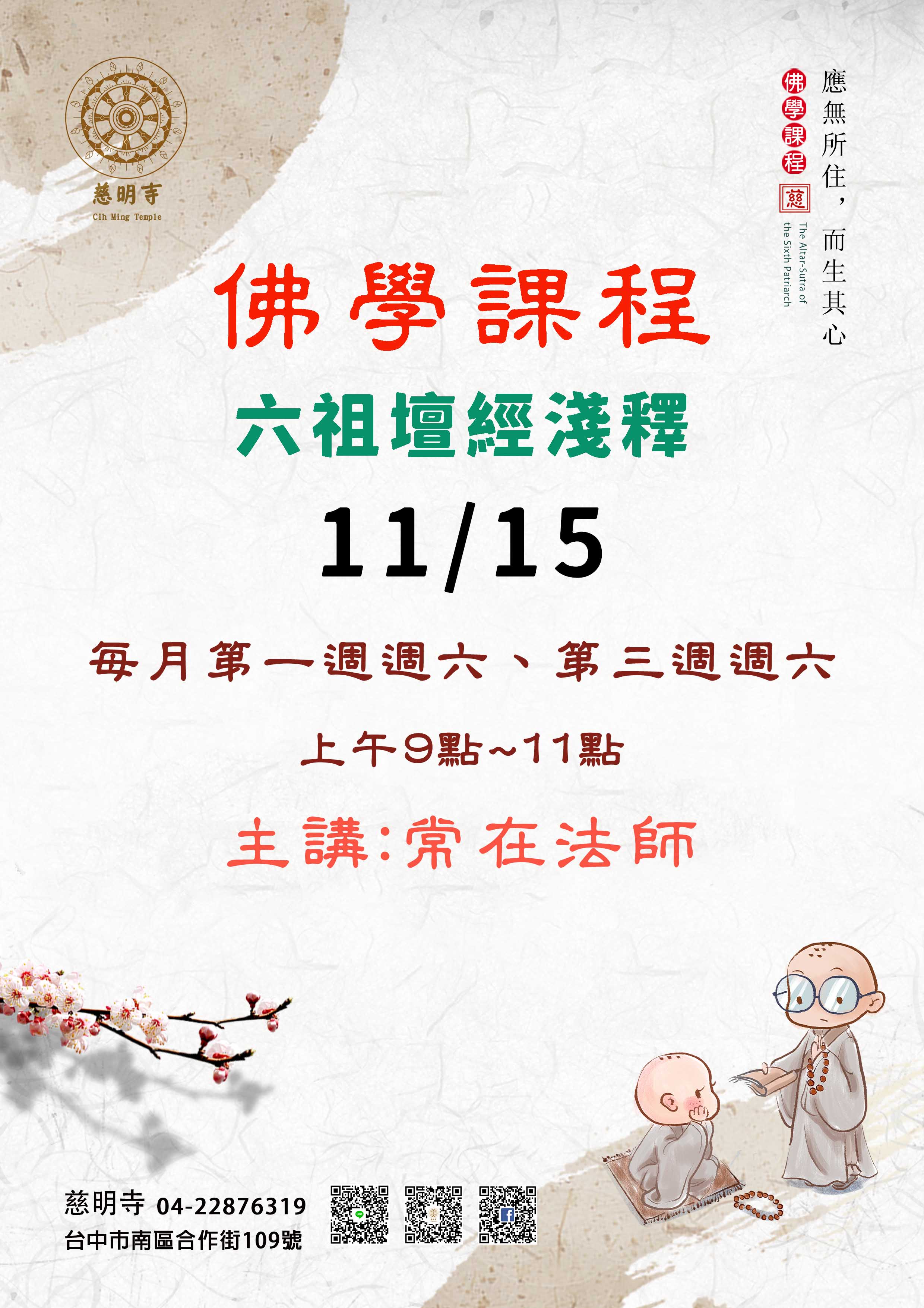 【訊息通知】2025-11-15 佛學課程 六祖壇經淺釋