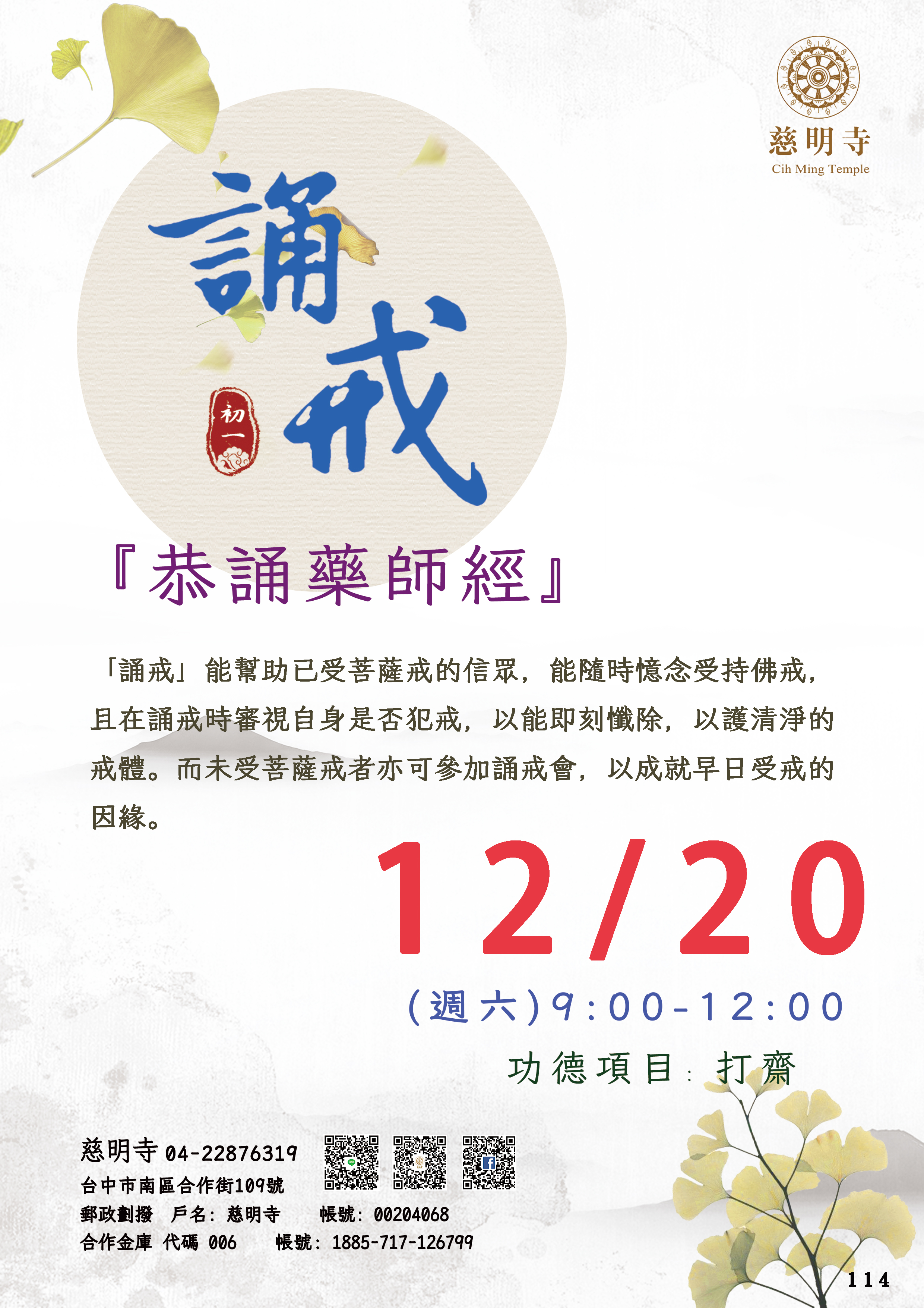 【法會通知】2025-12-20 初一誦戒~戒為無上菩提本,歡迎參與