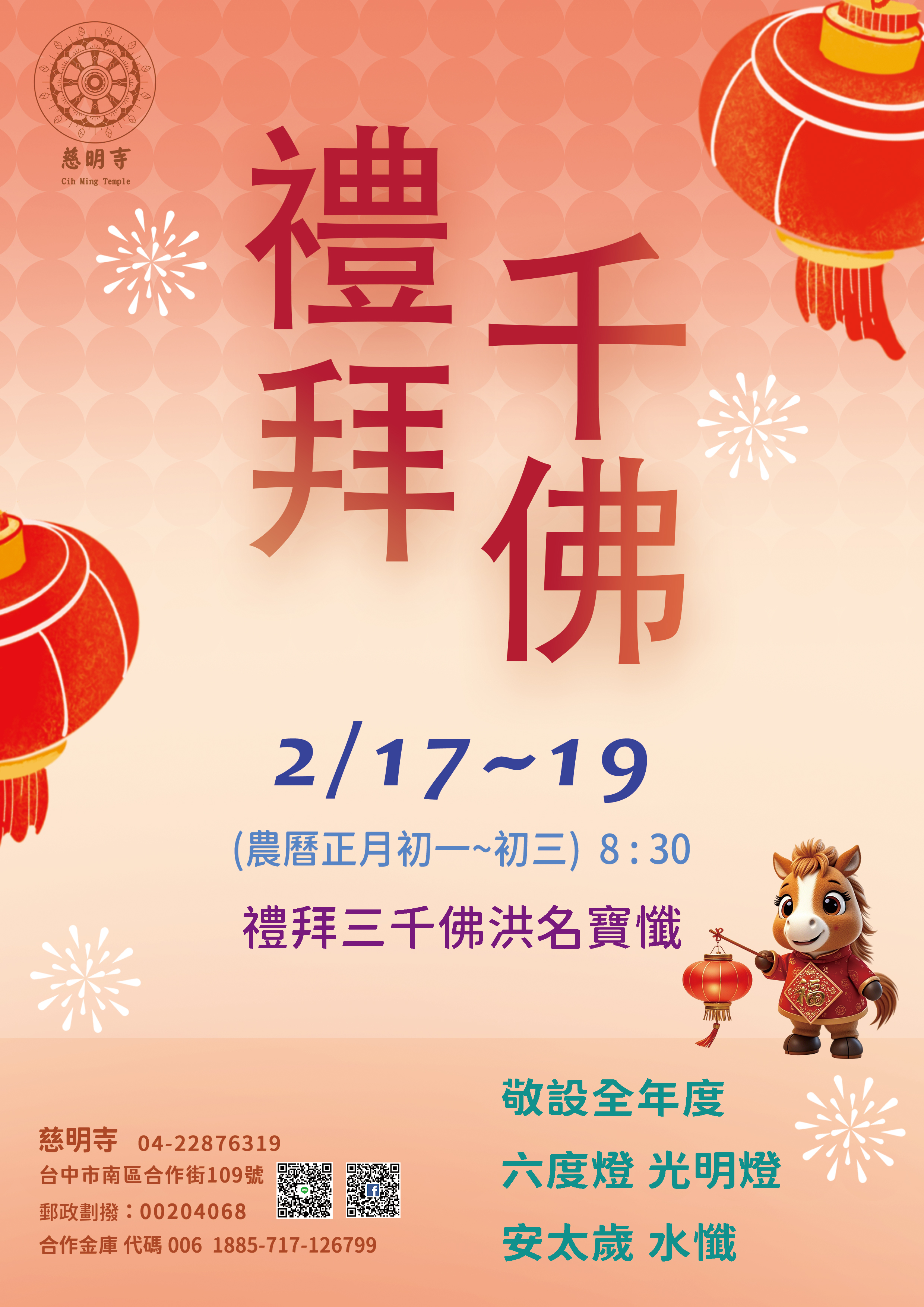 【法會訊息】2026-02-17~02-19 新春祈福禮拜千佛法會