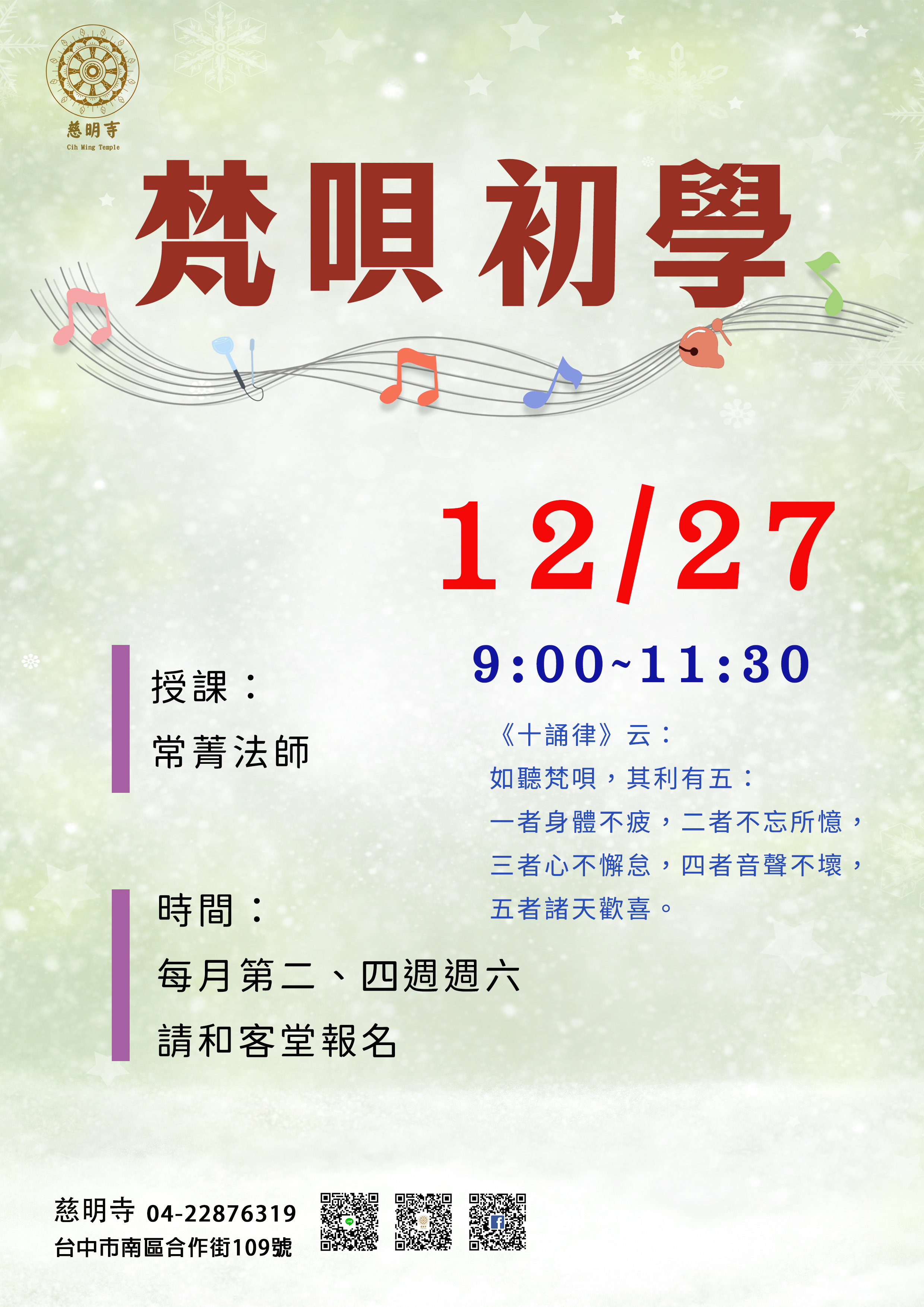 【訊息通知】2025-12-27 梵唄初學課 歡迎報名參加