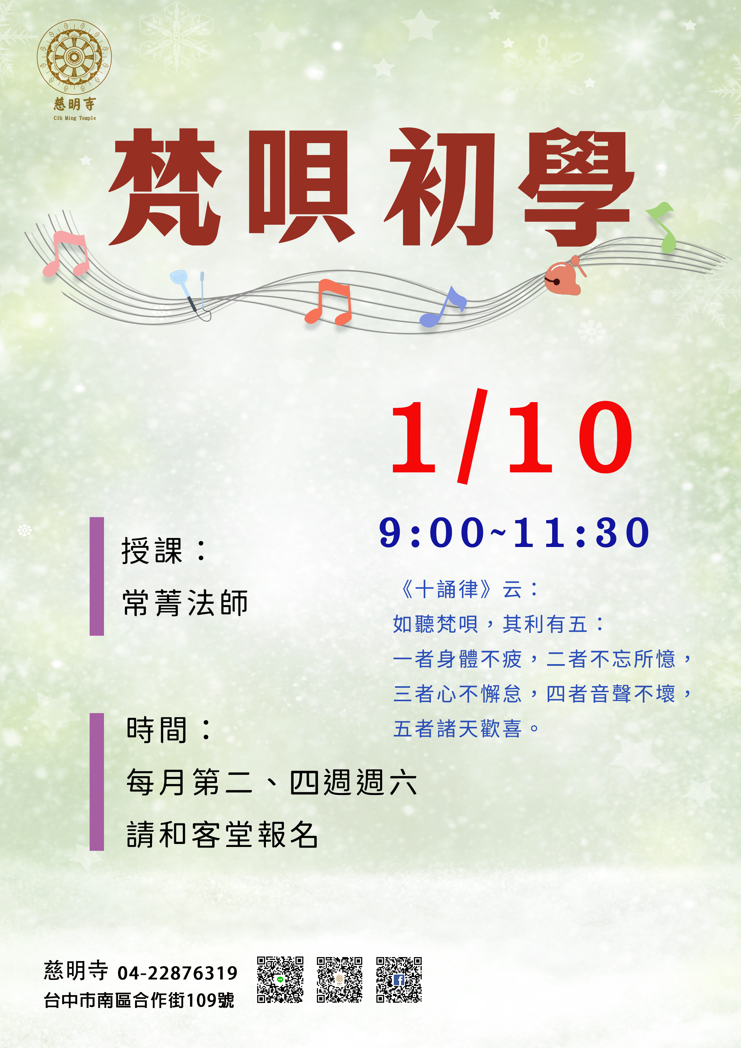 【訊息通知】2025-01-10 梵唄初學課 歡迎報名參加