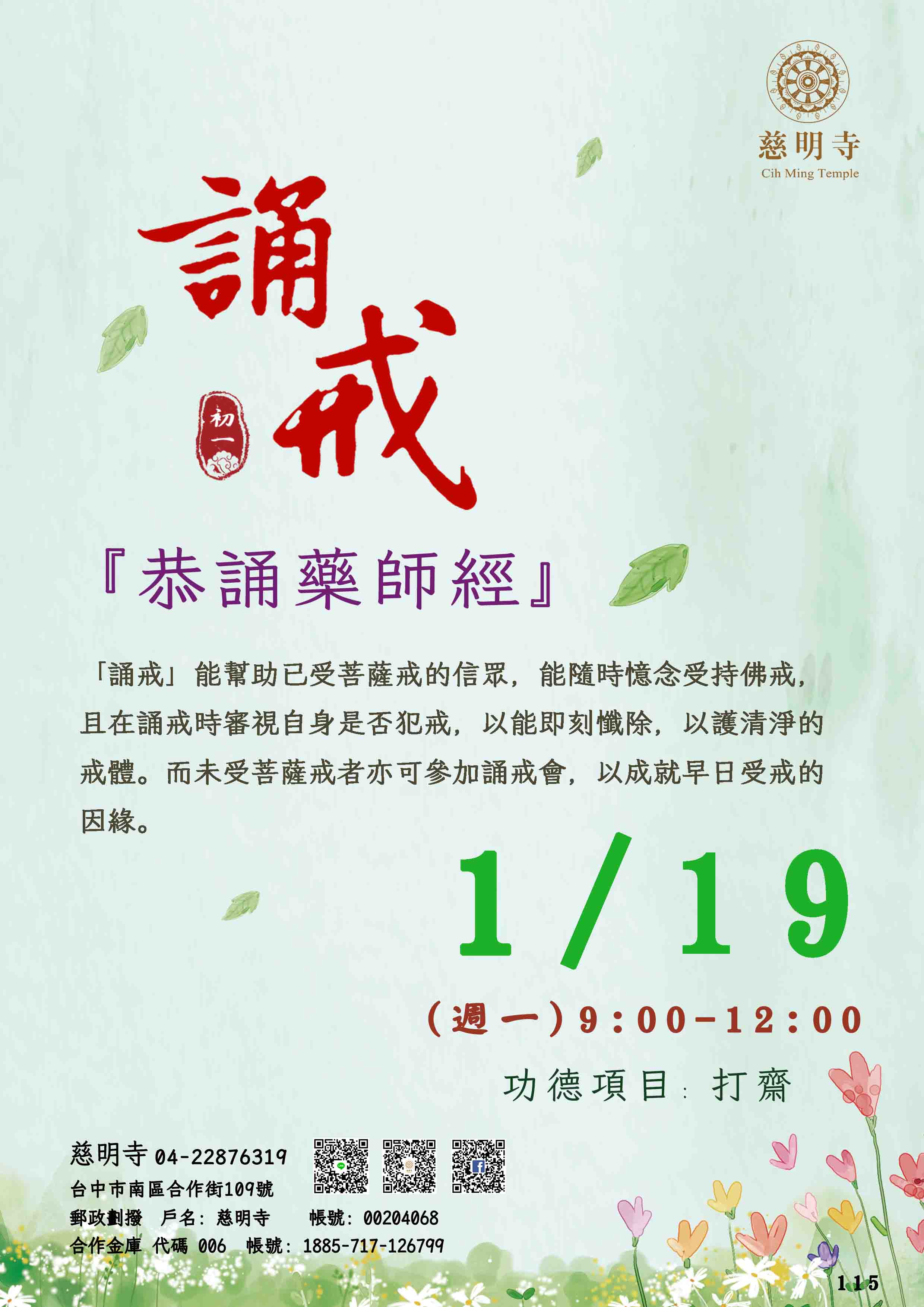 【法會通知】2026-1-19 初一誦戒~戒為無上菩提本,歡迎參與