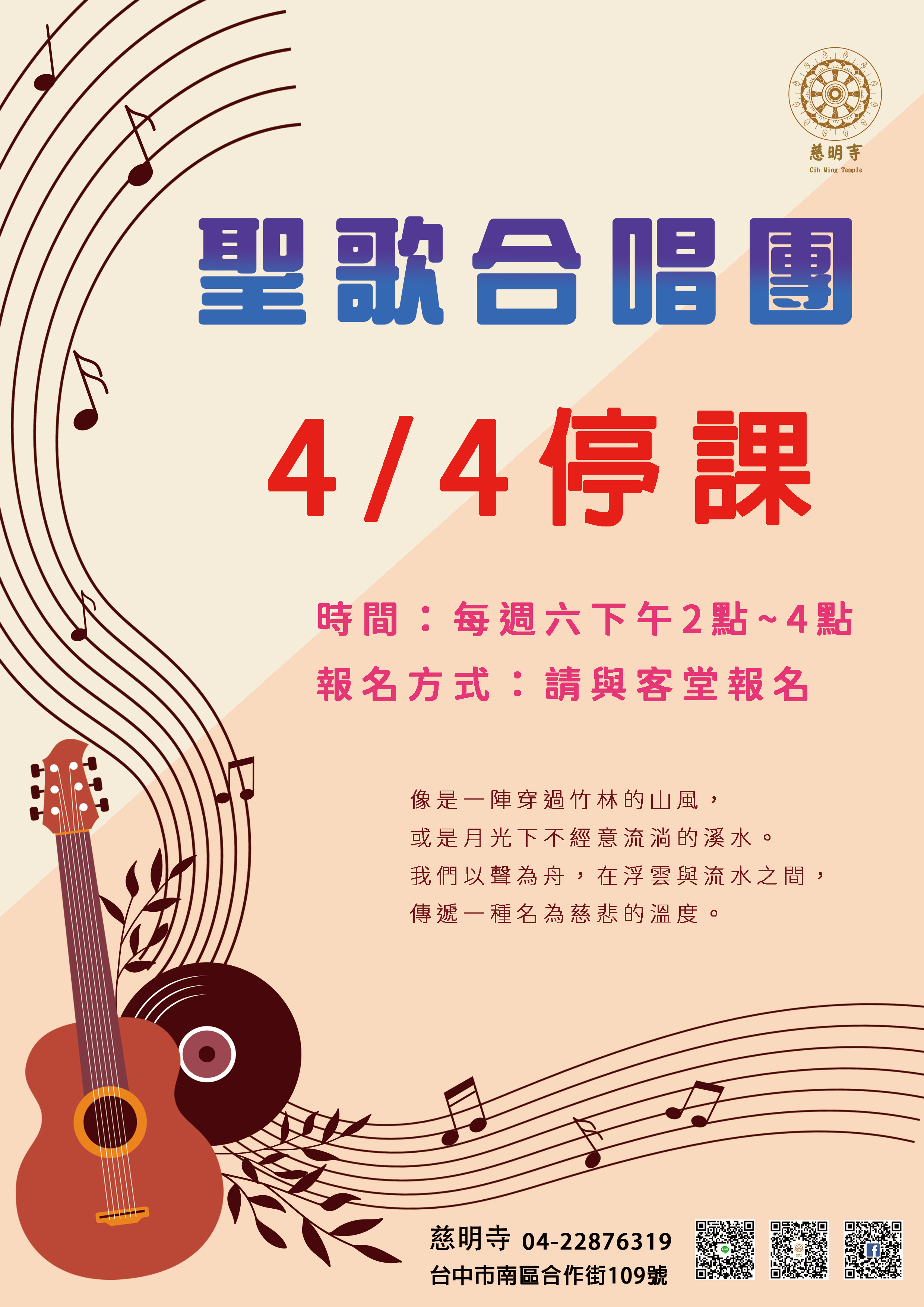 【訊息通知】2026-04-04 清明節暫停一次,慈明聖歌合唱團