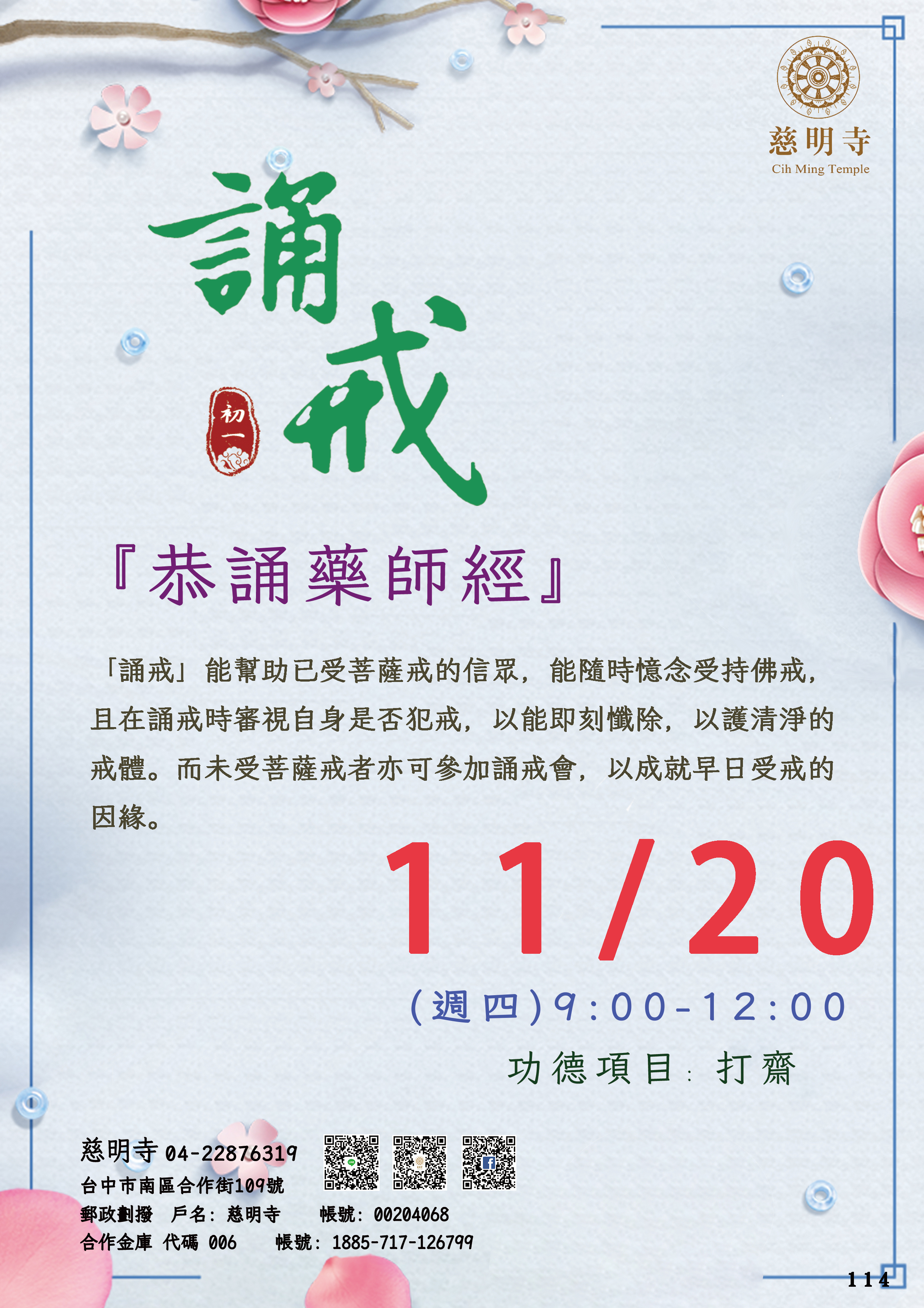 【法會通知】2025-11-20 初一誦戒~戒為無上菩提本,歡迎參與