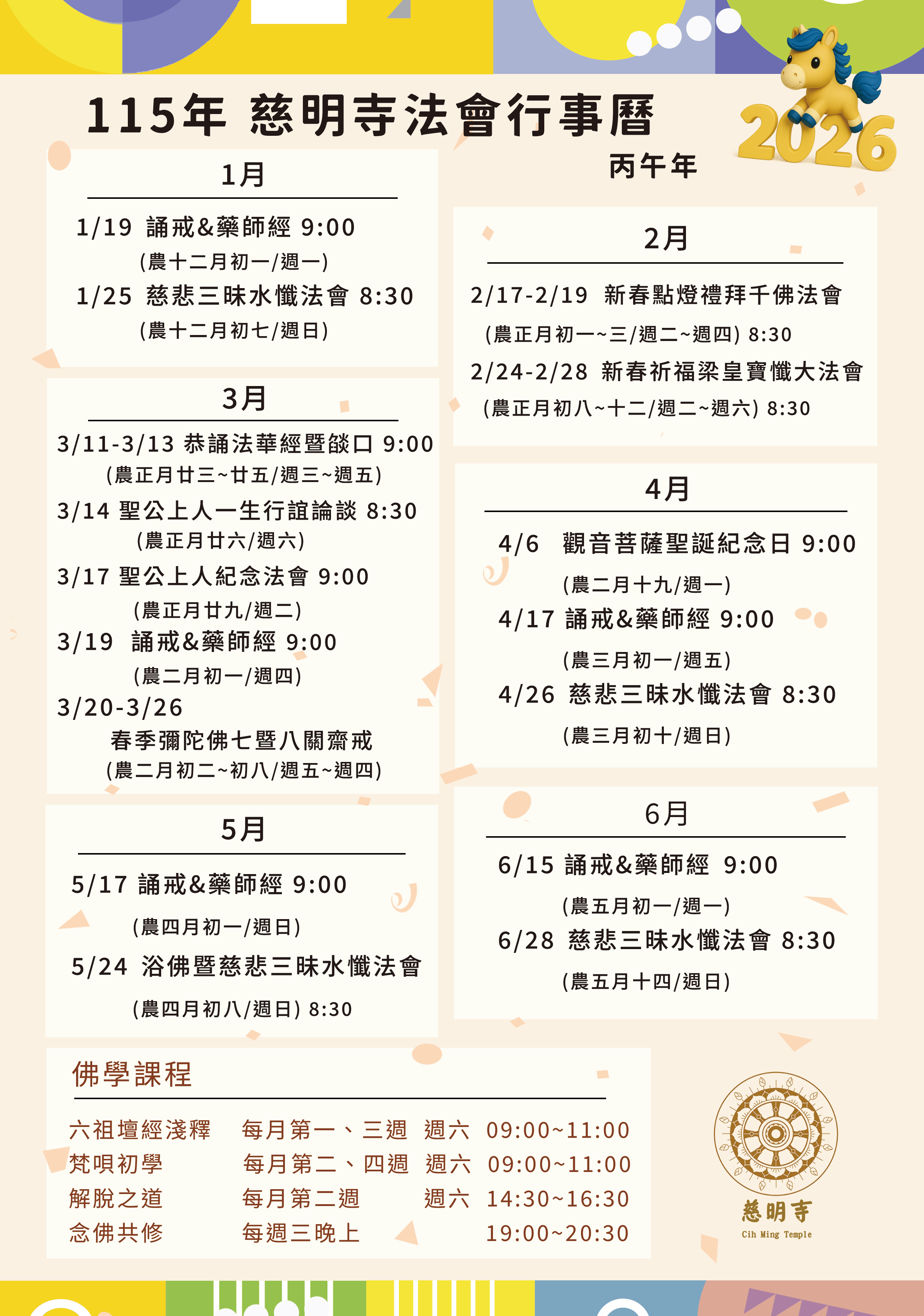 【訊息通知】2026-01-01 115年法會行事曆
