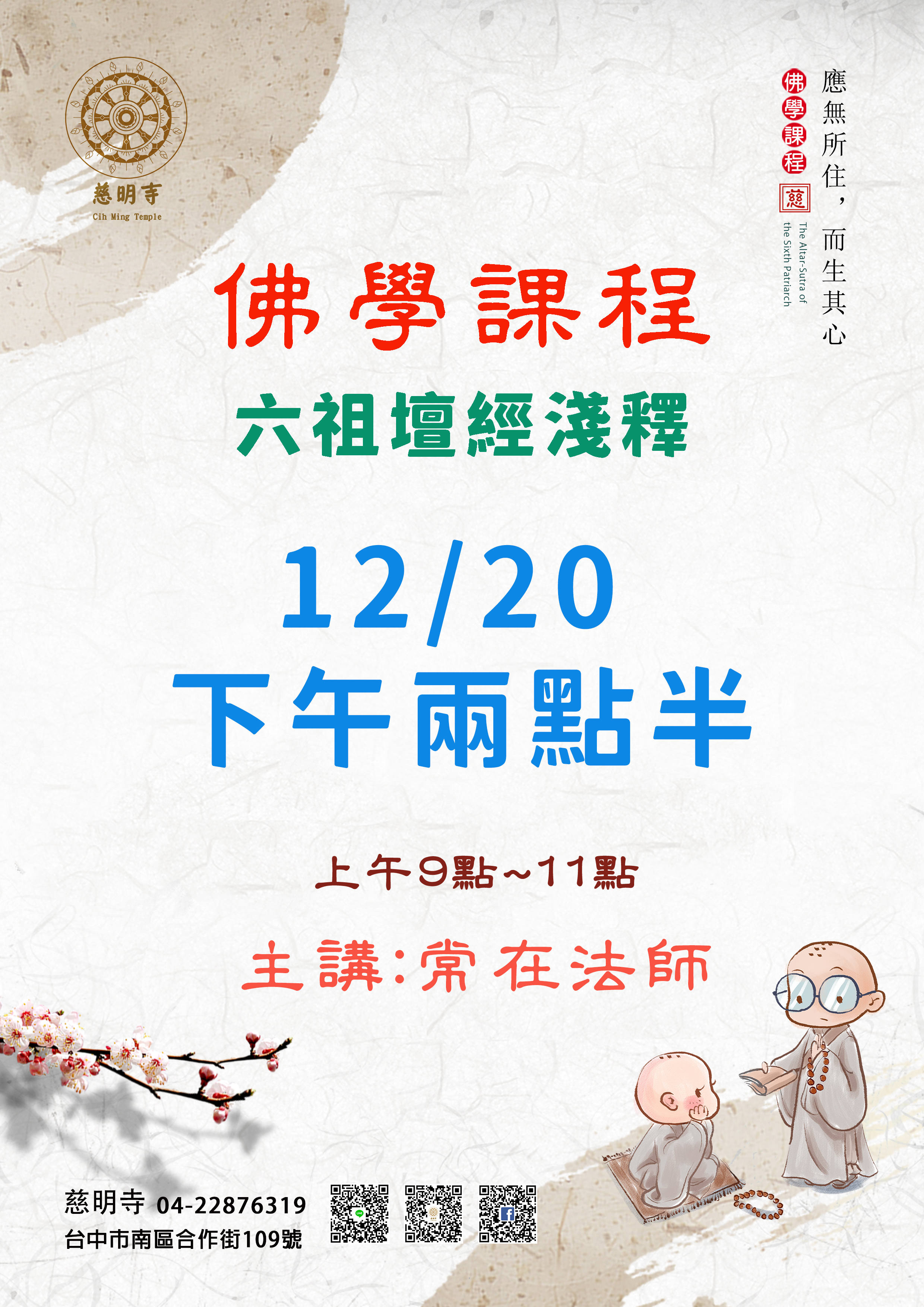 【訊息通知】2025-12-21 ((改20號下午上課))佛學課程 六祖壇經淺釋