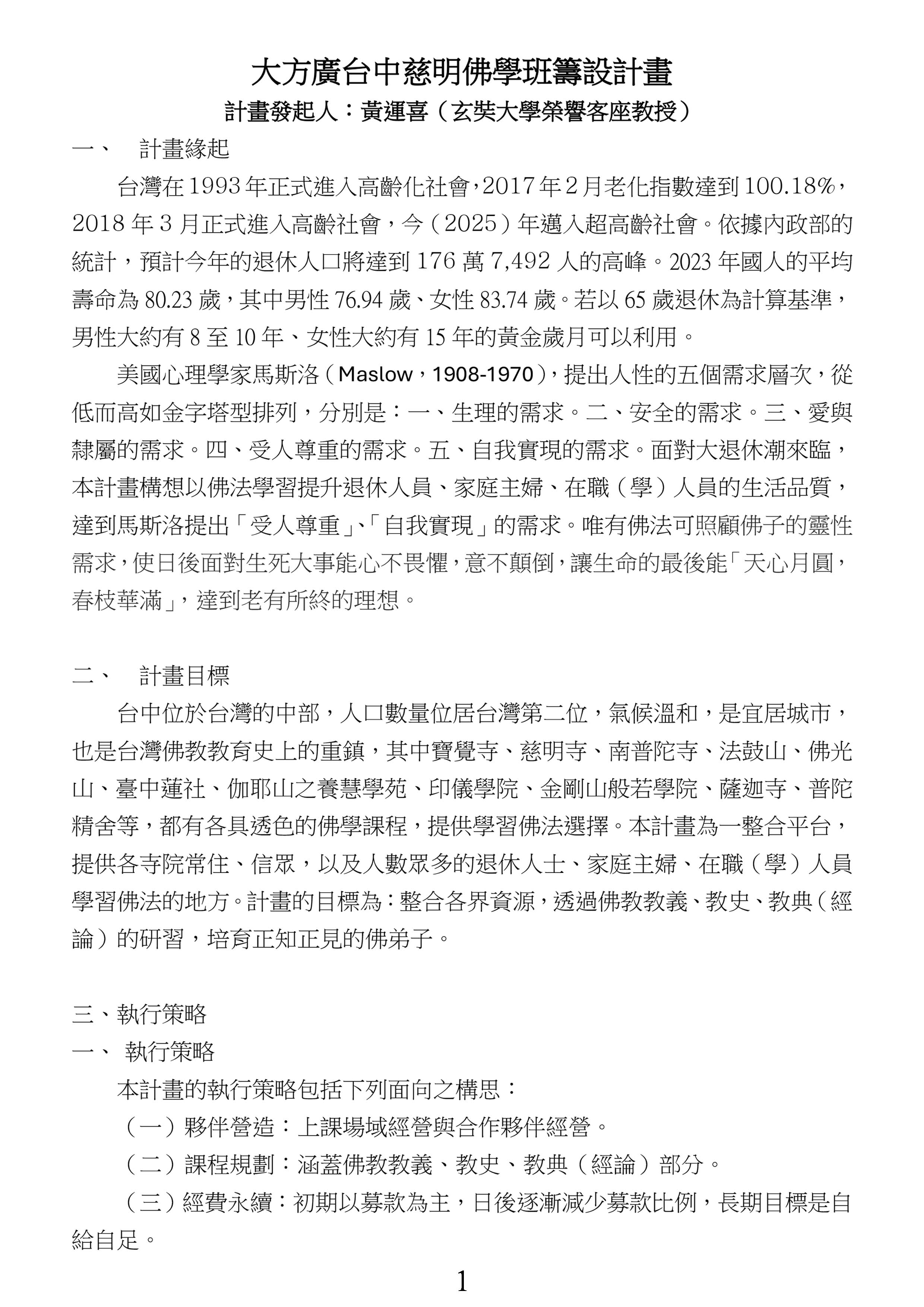 【訊息通知】115/4/8-8/5 大方廣臺中慈明佛學班招生囉~